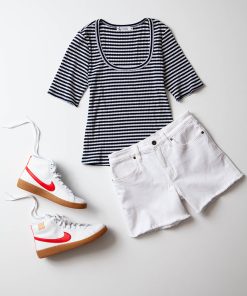 The Asher Rib Top is a simple pleasure that aims to please. Her half sleeve and perfect weight make the perfect layering piece. Which is perfect.