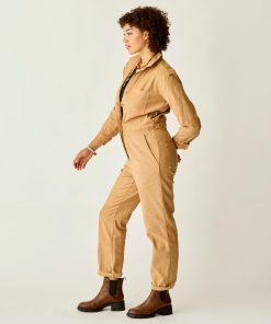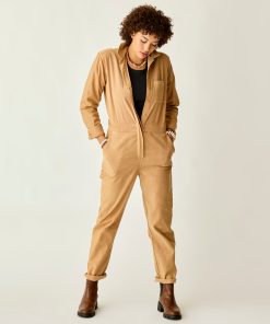 Suit up with the Bedford, it knows how to party. Organic cotton, front scoop pockets and adjustable waist tabs seal the deal. Wear this relaxed, straight leg jumpsuit fit cuffed or uncuffed to show its raw hem. T This product runs slightly small. If you want a relaxed fit, size up. If you want slim fit, order your regular size.