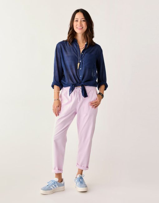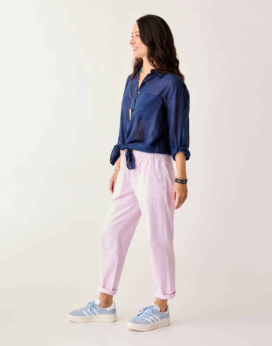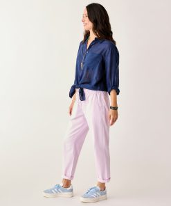 Put a bounce in your step with the casual comfort and competence of the Zoe. This easy pull-on pant with elastic waistband with draw cord is ready for whatever your day demands.