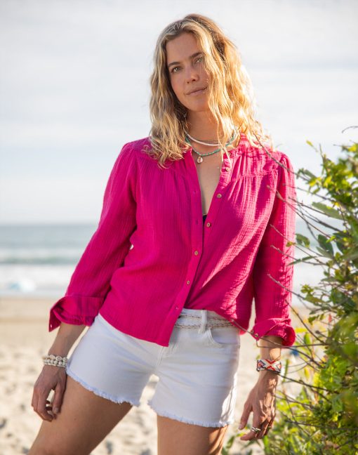 These stretchy denim shorts have the signature cut-off fringe hem, but also have extra styling in the beach-inspired embroidery. Your go-to cut-offs just got a makeover.