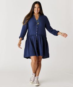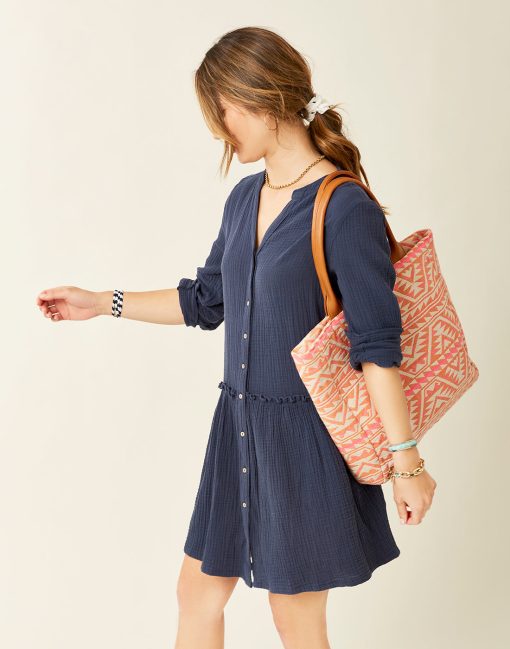 The casual charm of a collarless button down paired with a flouncy tiered skirt and playful ruffle detail. The Blair is pretty, in a totally effortless way. One of our favorites for throwing on after a swim.