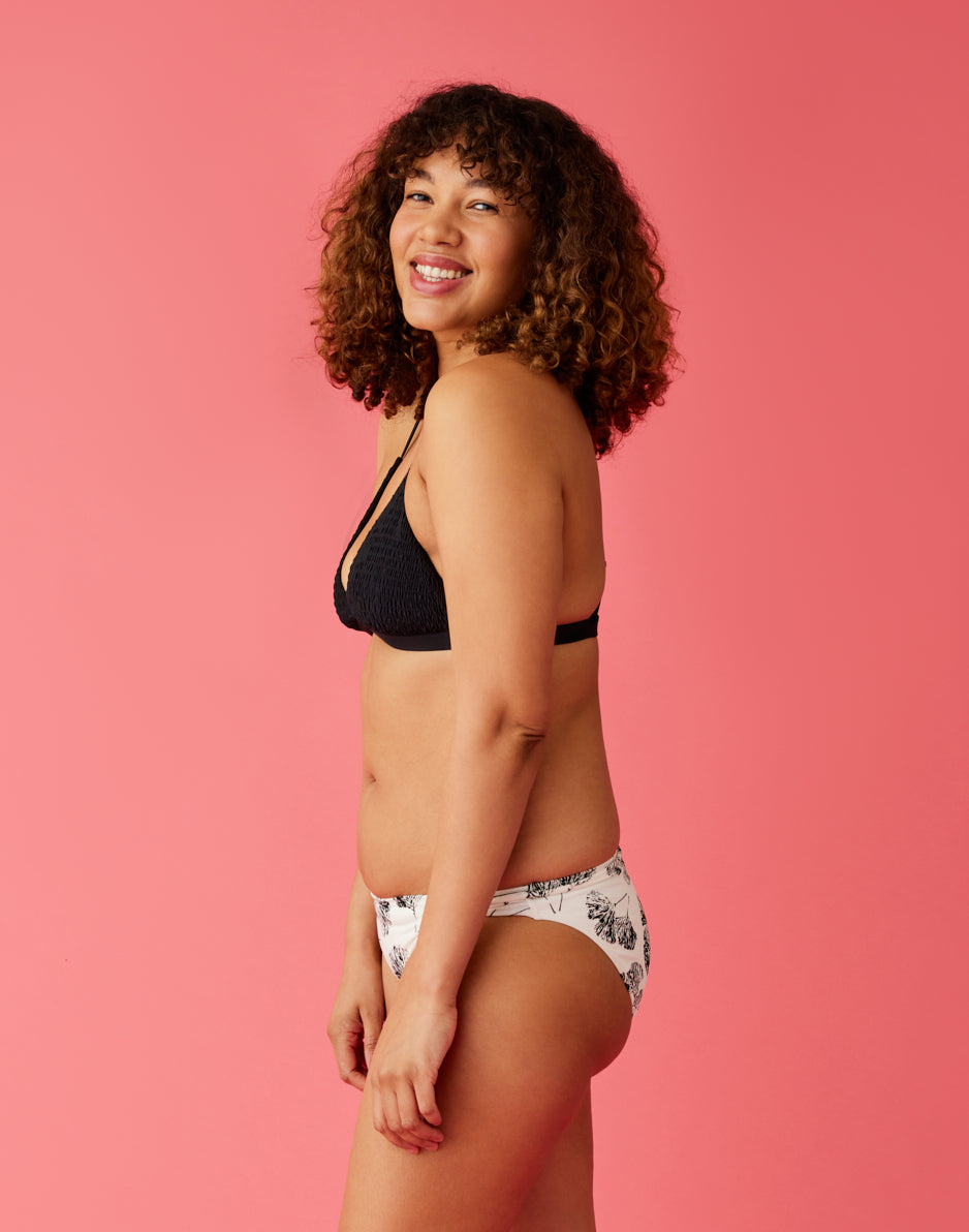 Classic with a twist. In a smocked material made from recycled polyester, the Gigi is a sweet selection for all the sun-kissed days ahead.