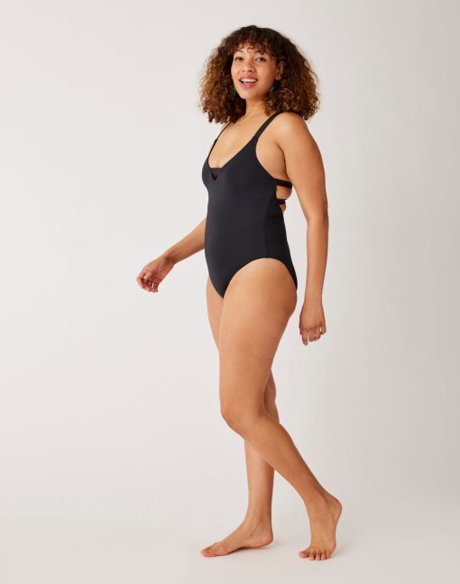 A strappy spin on that iconic lifeguard look. Flattering, flirty, and just a little nostalgic, the Malibu-ready Logan one piece features a supportive shape and subtly sexy open back.