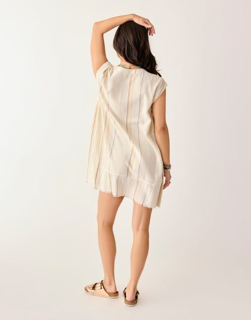 Nothing eases the transition from uncovered to covered like the Zuma Stitched Coverup. Let her unlined, relaxed fit, and V-neck gently grace you with their presence, while detailed seaming and a raw edge hem dazzle the dote upon your eyes.