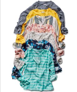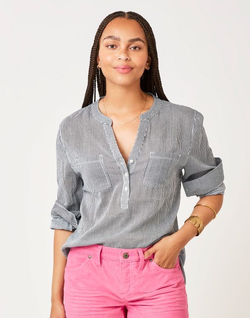 Flattering popover four button style makes this lightweight cotton shirt a must for summer. Easy styling lets you wear open over a bikini or more buttoned up.