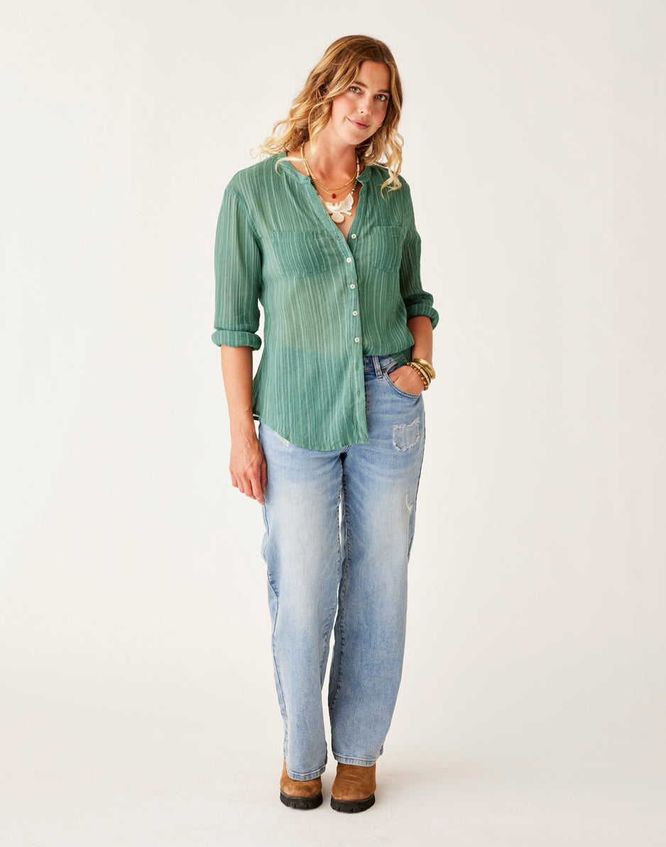 Carve Designs Women’s Tops Dylan Gauze Tunic | Forest Multistripe