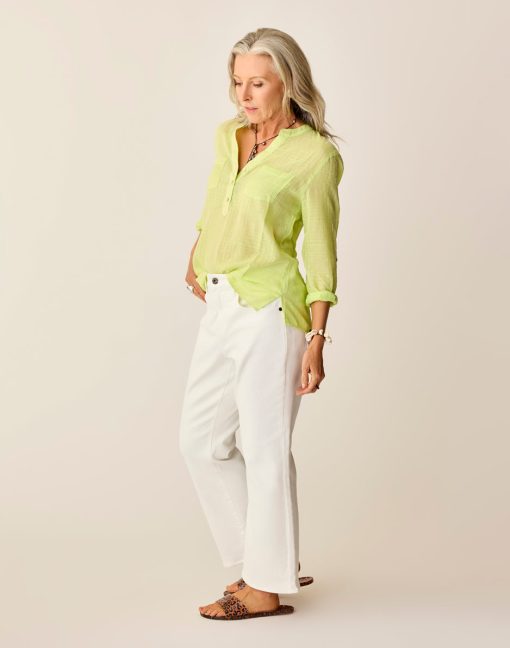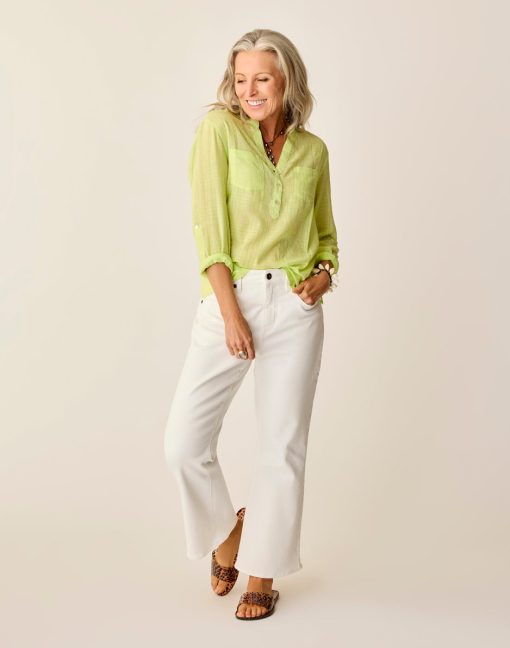 Simple sophistication make this lightweight summer top a weekend bag must. Chest pockets and three button open V-neck dial in the vibe in stride.