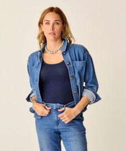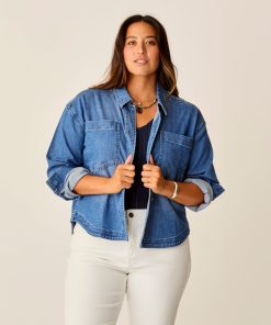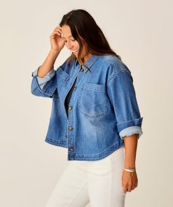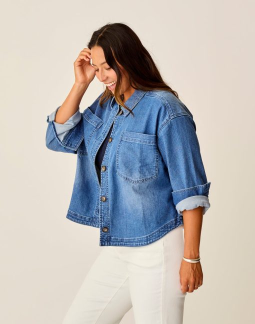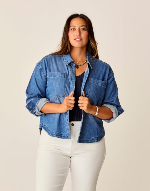 Who invented the Shacket? The mother of invention did, AKA necessity. You’re welcome. Our Flora Denim Shacket sports a shaped shirttail hem, oversized chest pockets and is made from a lightweight denim fabric Darwin would be proud of.