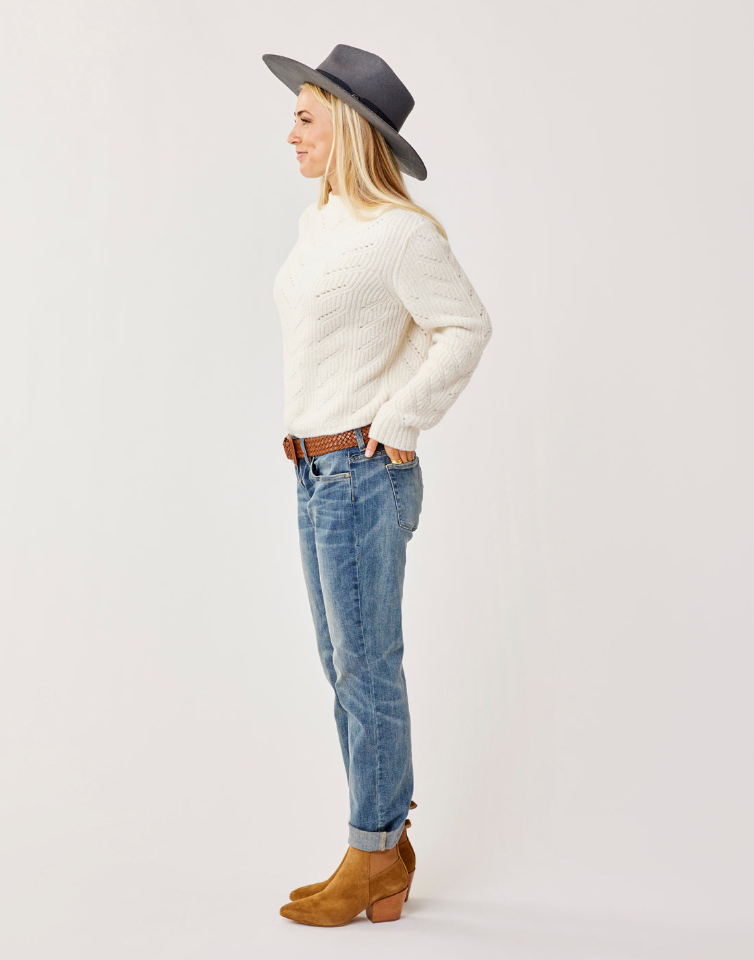 Cozy and fitted to absolute perfection, the Monroe Sweater feels like laid-back luxury, with a classic silhouette, unbelievably soft material, and superb attention to detail. The pointelle stitch adds a delicate yet sophisticated final touch.