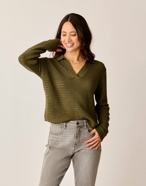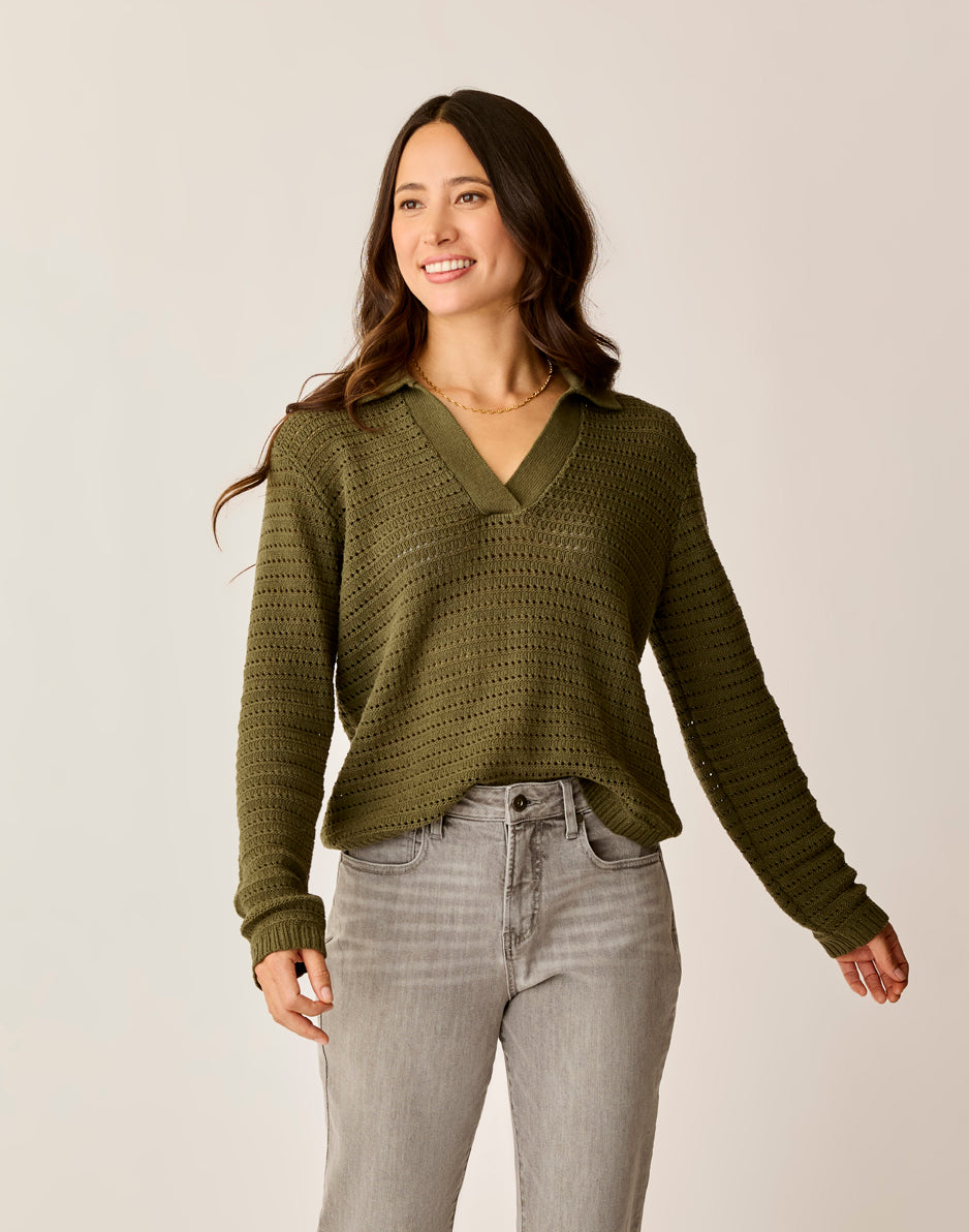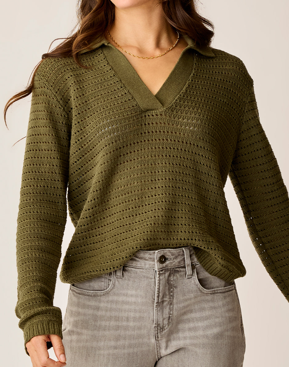 Whether swinging the old polo mallet or sippin’ chard poolside, the Morgan elevates your game, by keeping it classy. You’ll stand a little taller as her relaxed fit, collar & front placket, open airy stitch, and rib hem boost confidence with every savory step.